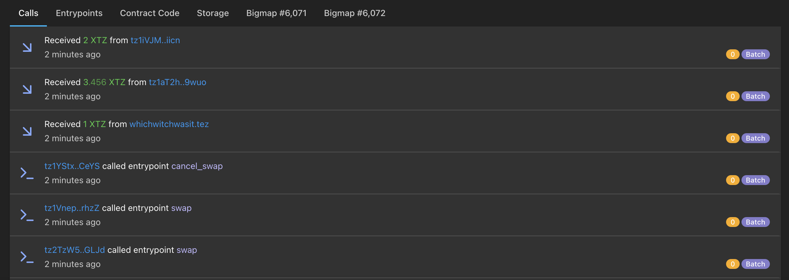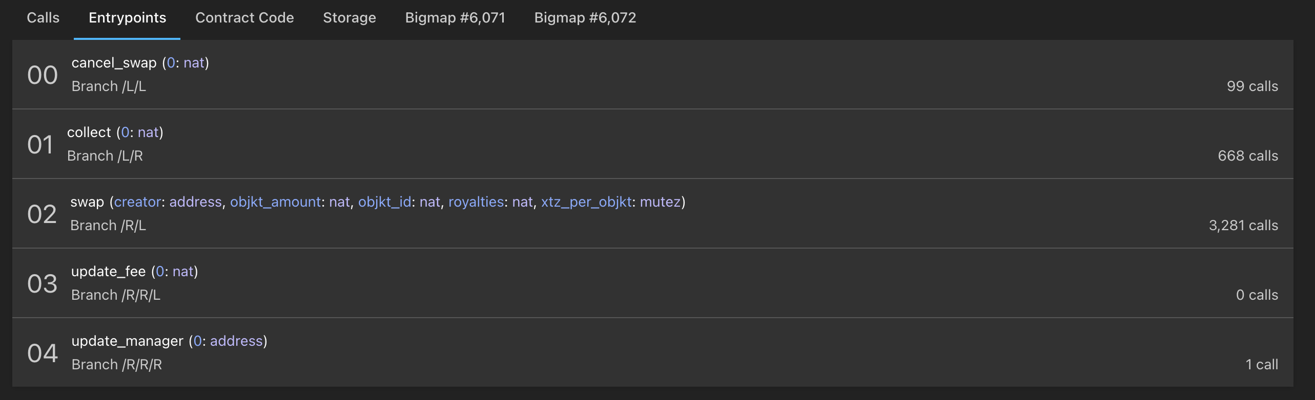 Here you have a list of all your entrypoints and their parameters. Furthermore, you can see how many calls each entrypoint has received.